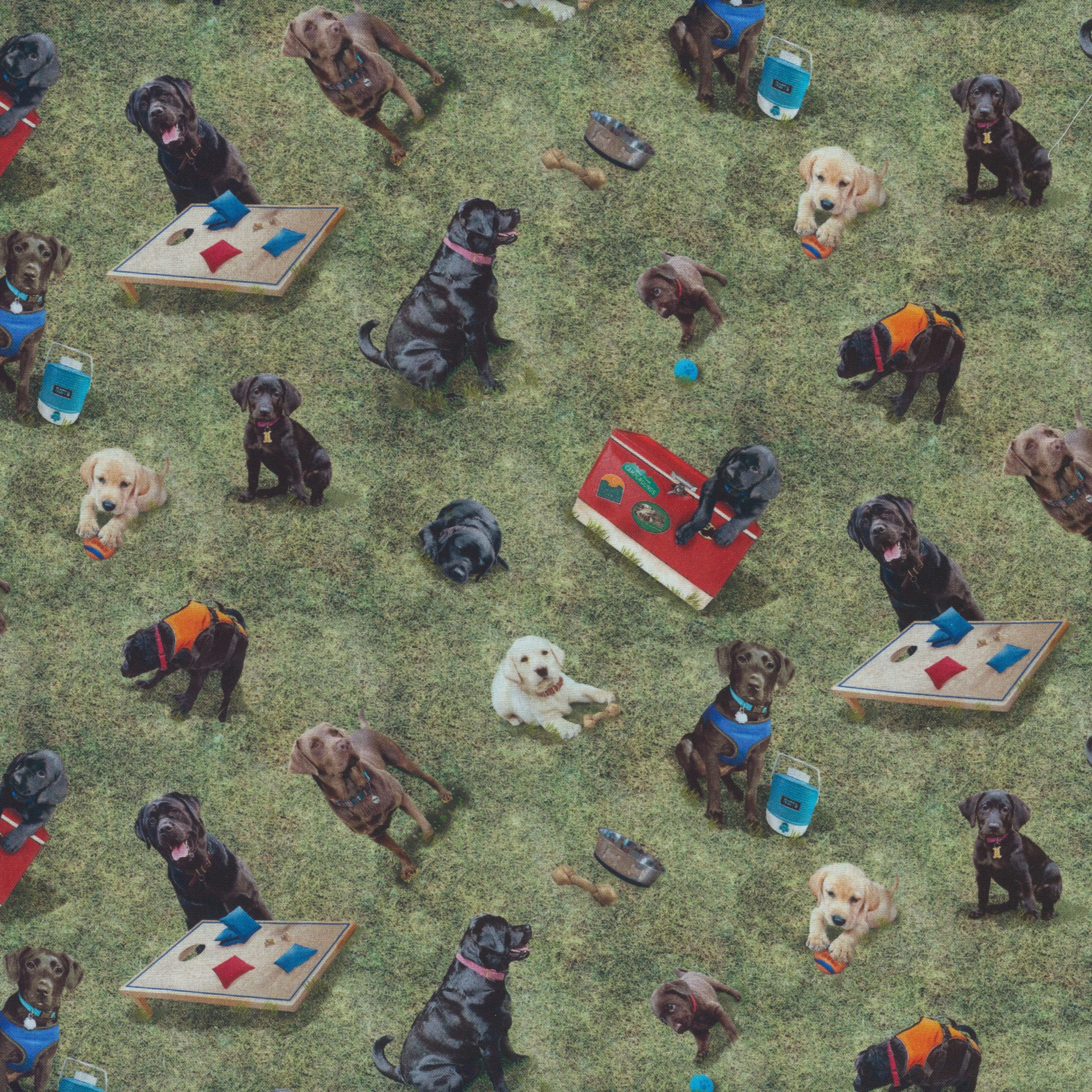 Accueil / Boutique / Tissus / Coton / Chiens sur le gazon – Vert