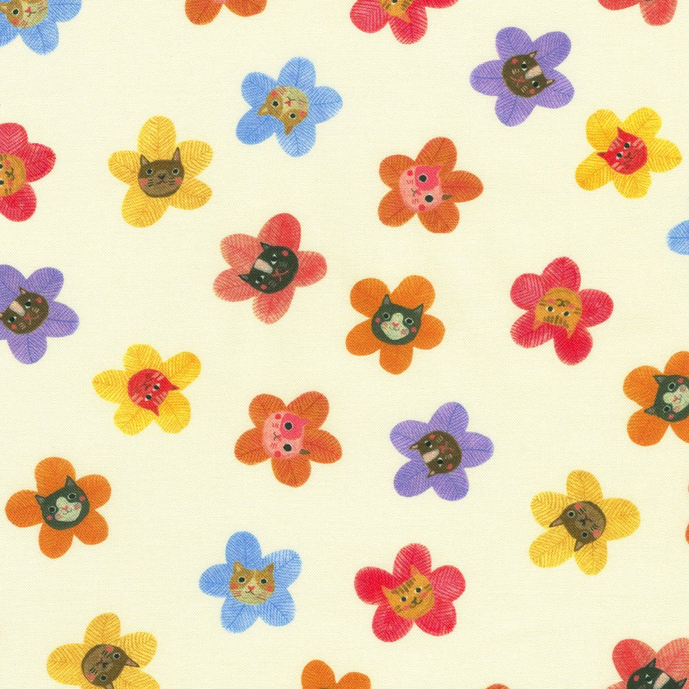Accueil / Boutique / Tissus / Coton / Fleurs et chat – Jaune