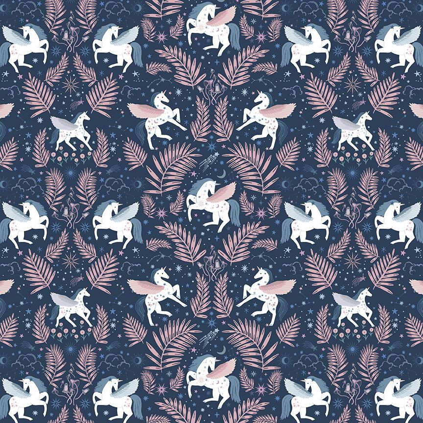 Accueil / Boutique / Tissus / Coton / Licornes – Bleu foncé