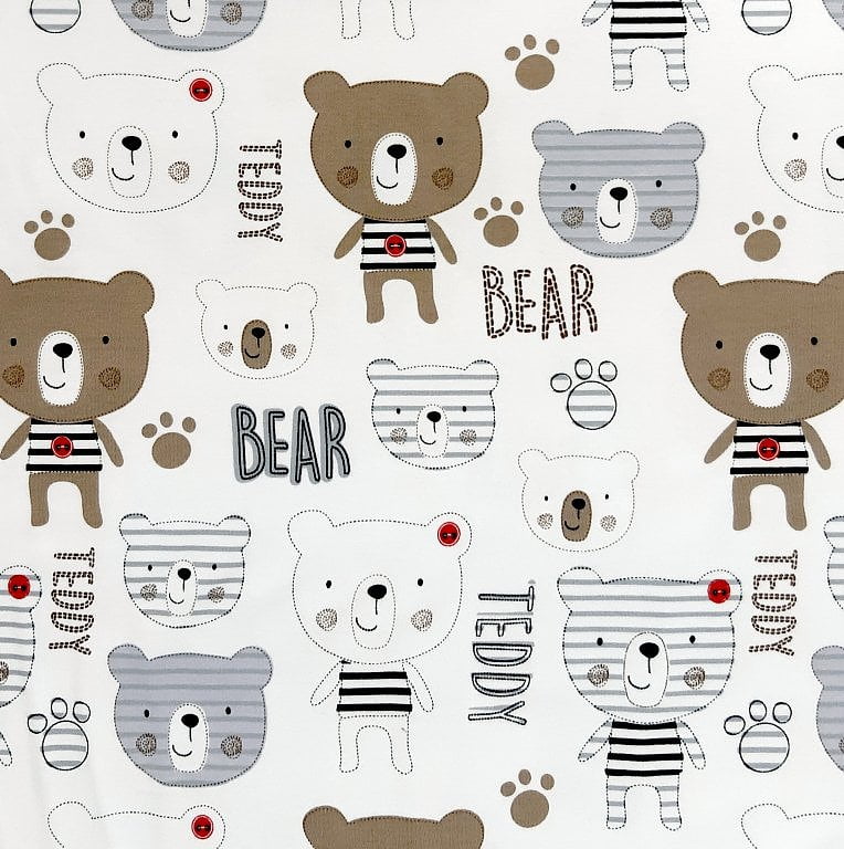 Accueil / Boutique / Tissus / Tricot interlock / Interlock – Ours et rayures – Blanc